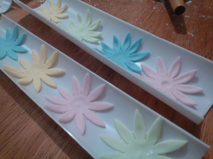 The flowers were fondant as well. We cut them out with flower shaped cutters and hand shaped them with fondant tools that you can find at most craft stores. (I say “we” because I was helped by some dear friends who cut and shaped most of the flowers. Good job team.)