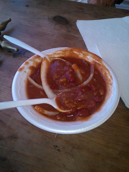 One of the shops we had passed was selling an “elk chili”. (Don’t get me started on chili….) We got a bowl of the elk chili and gave it a try. It was full of beans and elk meat. I was hoping the elk would taste a little more “gamey” or “wild”, but it wasn’t. It did taste a little different, but it wasn’t worth writing home about. (Apparently it was enough to blog about though……..)